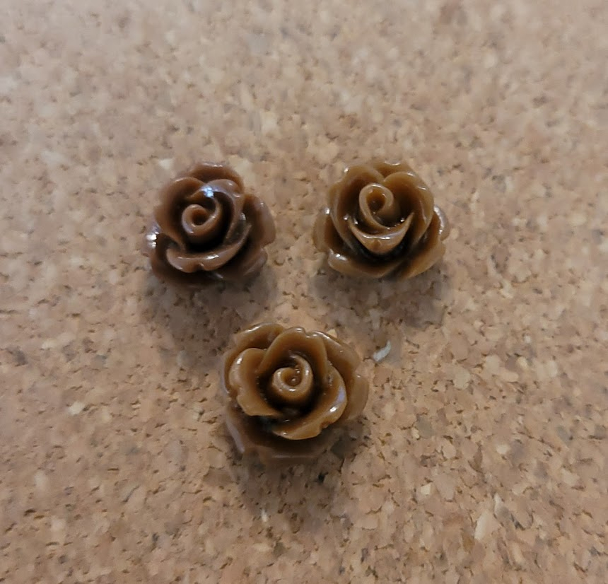 Trandafir caboson din rasina, 10 mm, maro, 1 buc