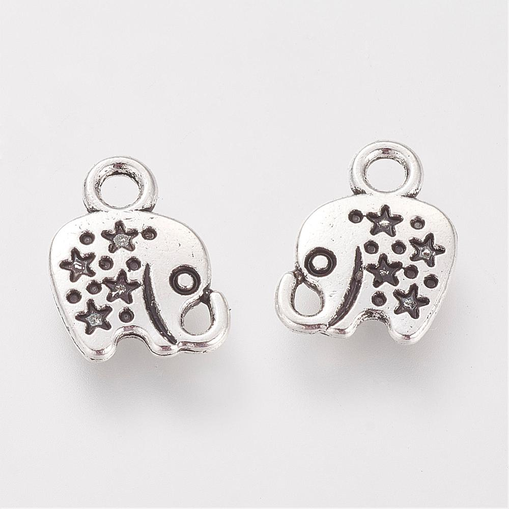 Charm elefant argintiu argintiu antichizat.