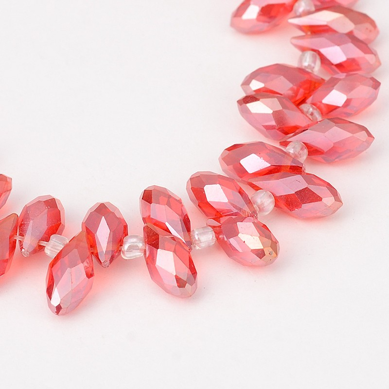 Margele de cristal, brioleta lacrima fatetata electroplacata Rosu AB 12X6 mm-1 bucata