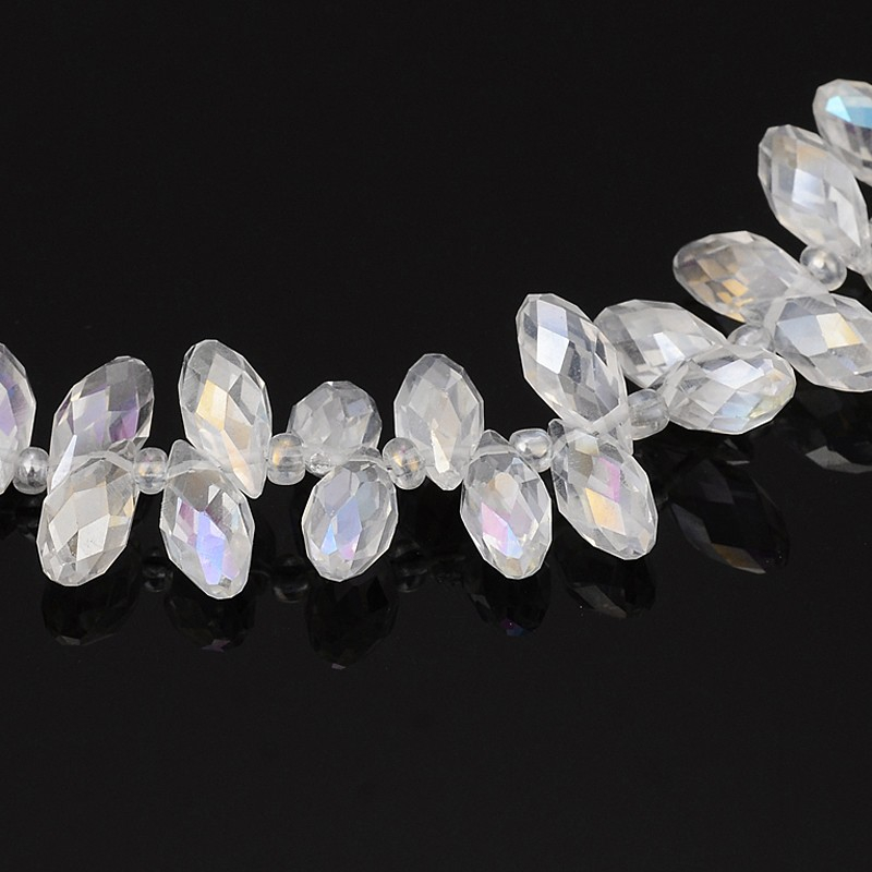 Margele de cristal, brioleta lacrima fatetata electroplacata transparent AB 12X6 mm-1 bucata