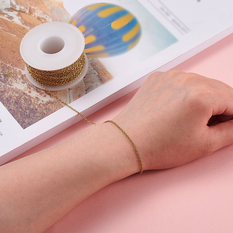 💎 Sugestie pentru designeri handmade: combină acest lanț cu charmuri, conectori sau mărgele pentru a crea coliere și brățări personalizate, elegante și durabile. Pentru un aspect uniform, recomandăm să fie folosit împreună cu alte accesorii placate cu aur 18K prin Ion Plating.