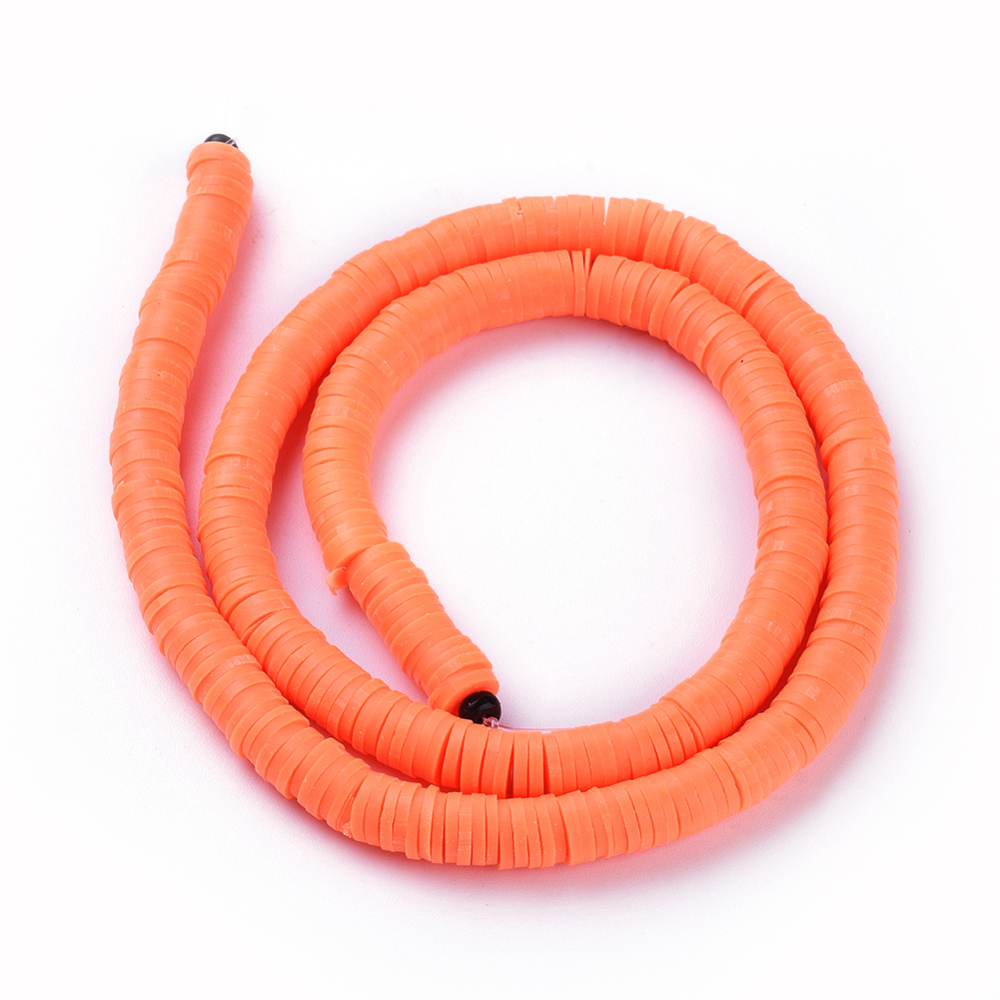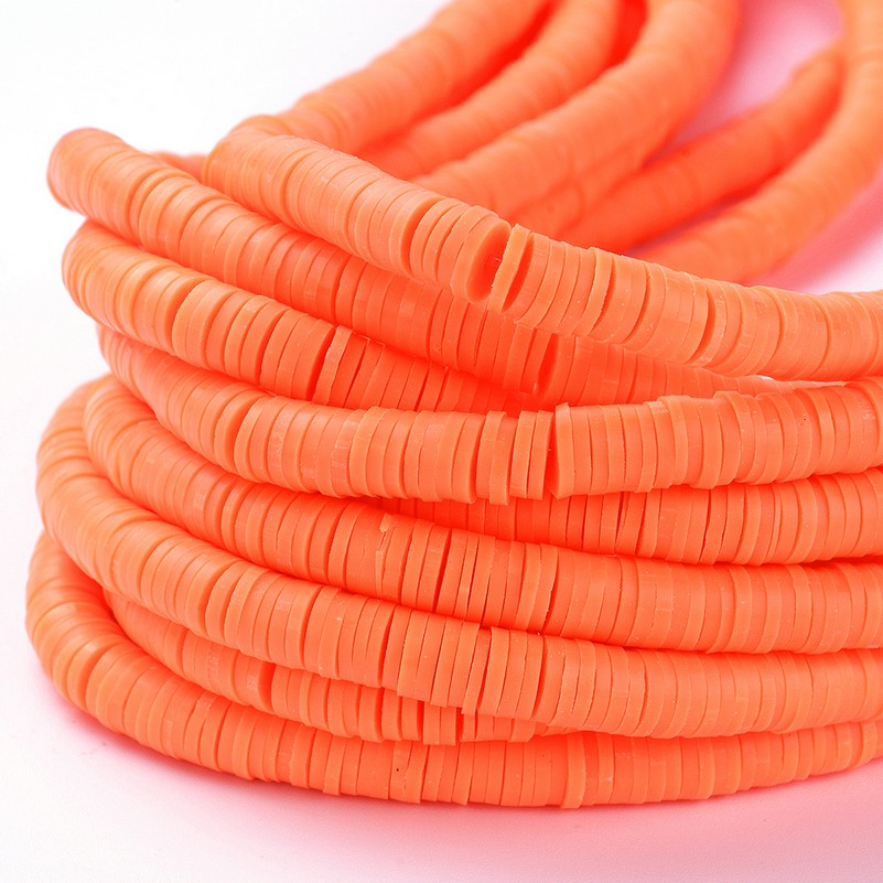 Margele din lut polimeric, handmade, disc, heishi, 6X1 mm, portocaliu 1 sir