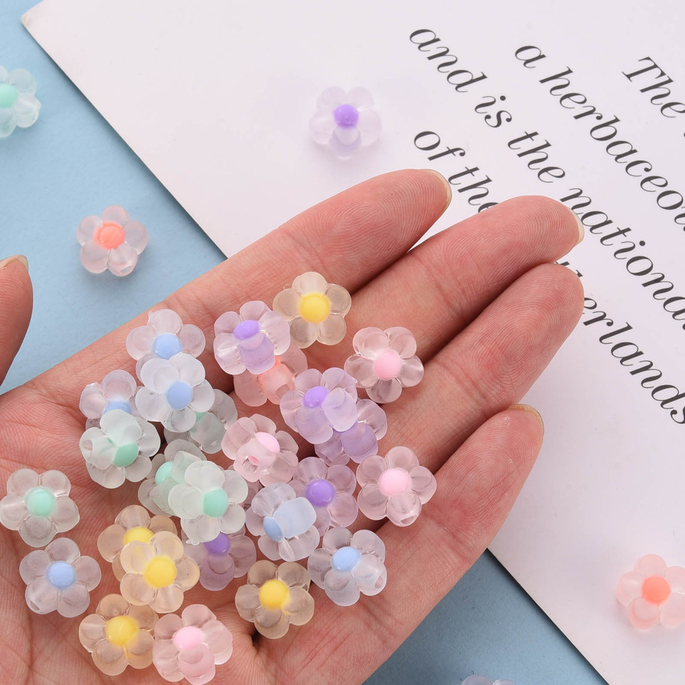 Margele acrilice in forma de floare, transparent cu roz 12 mm - 1 bucata