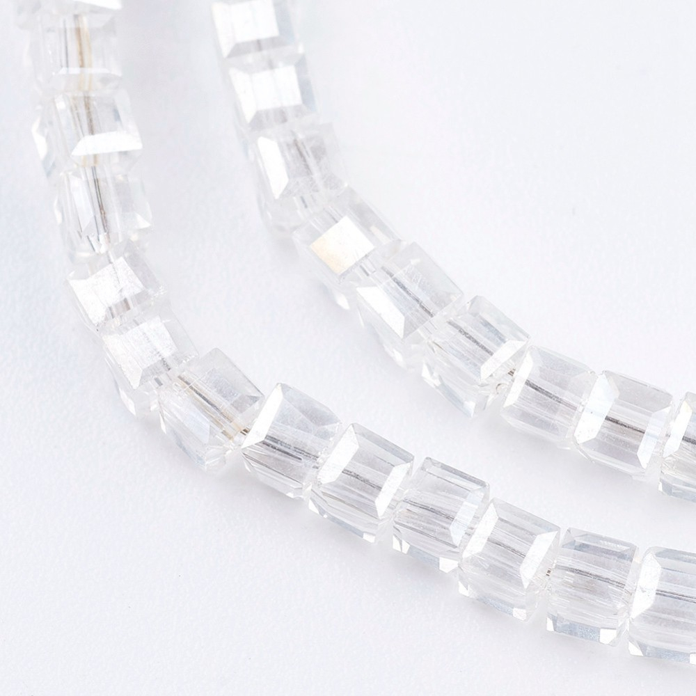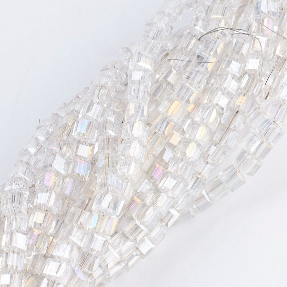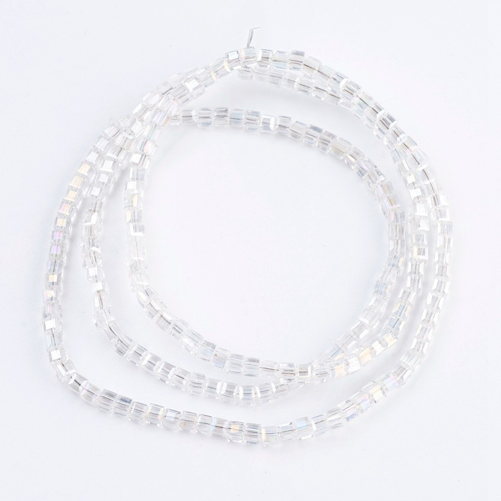 Margele de cristal, cub, Transparent AB, 2X2 mm - 1 bucata