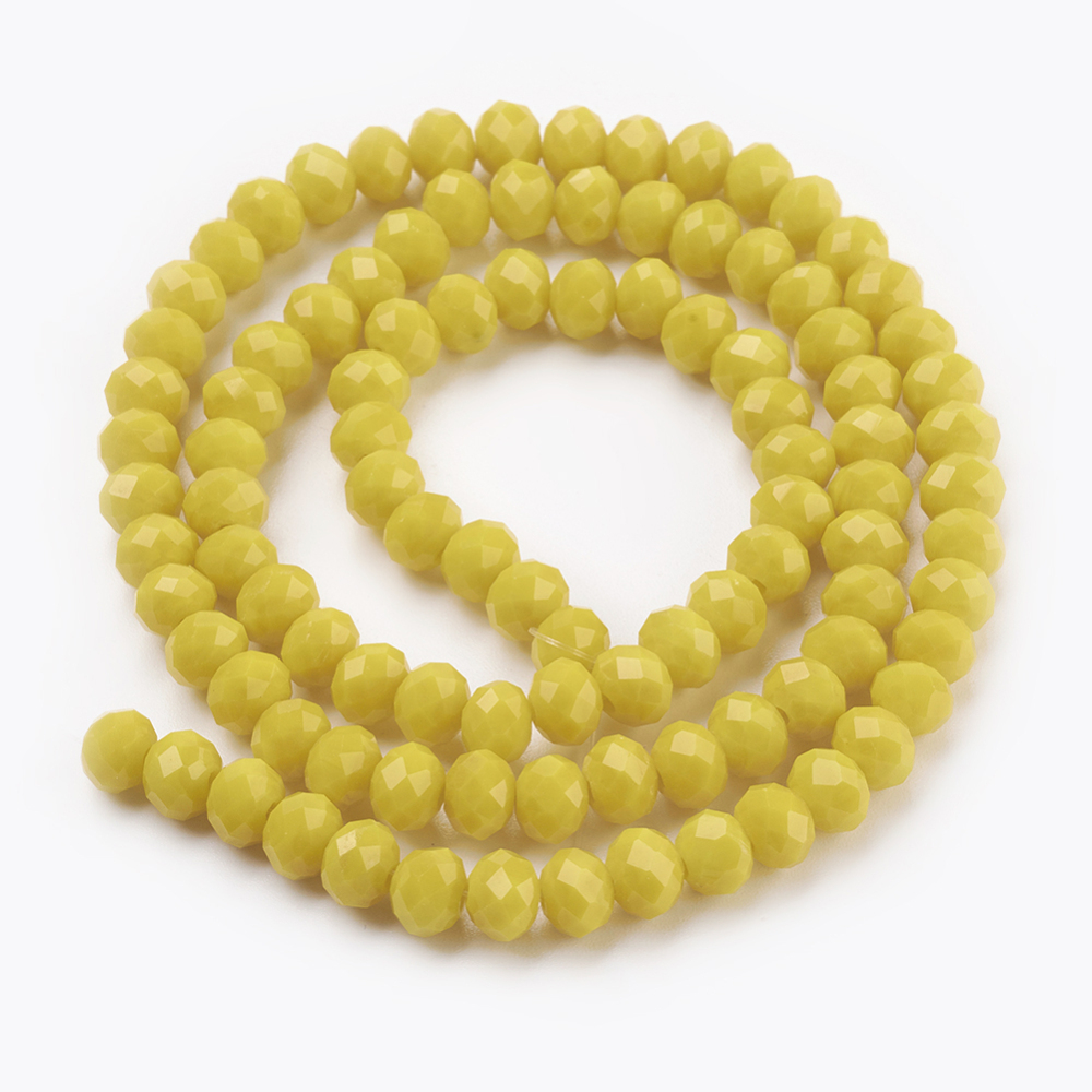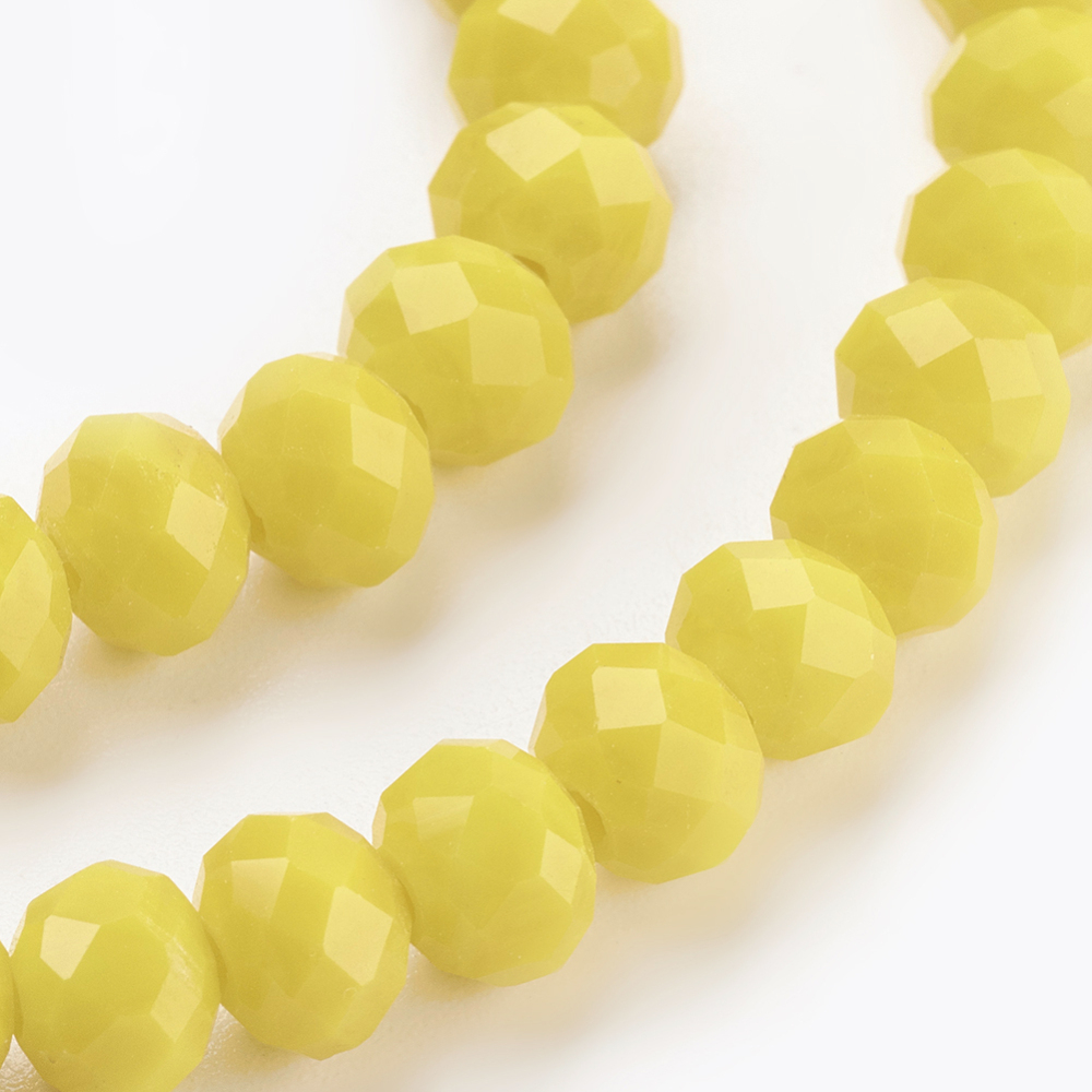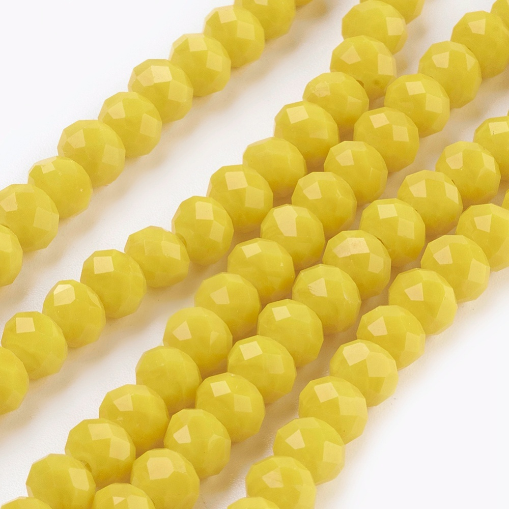 Margele de sticla rondele fatetate, galben, imitatie de jad - 6x4 mm - 1 bucata
