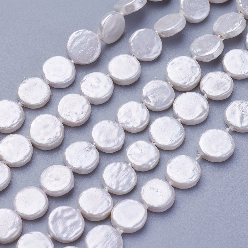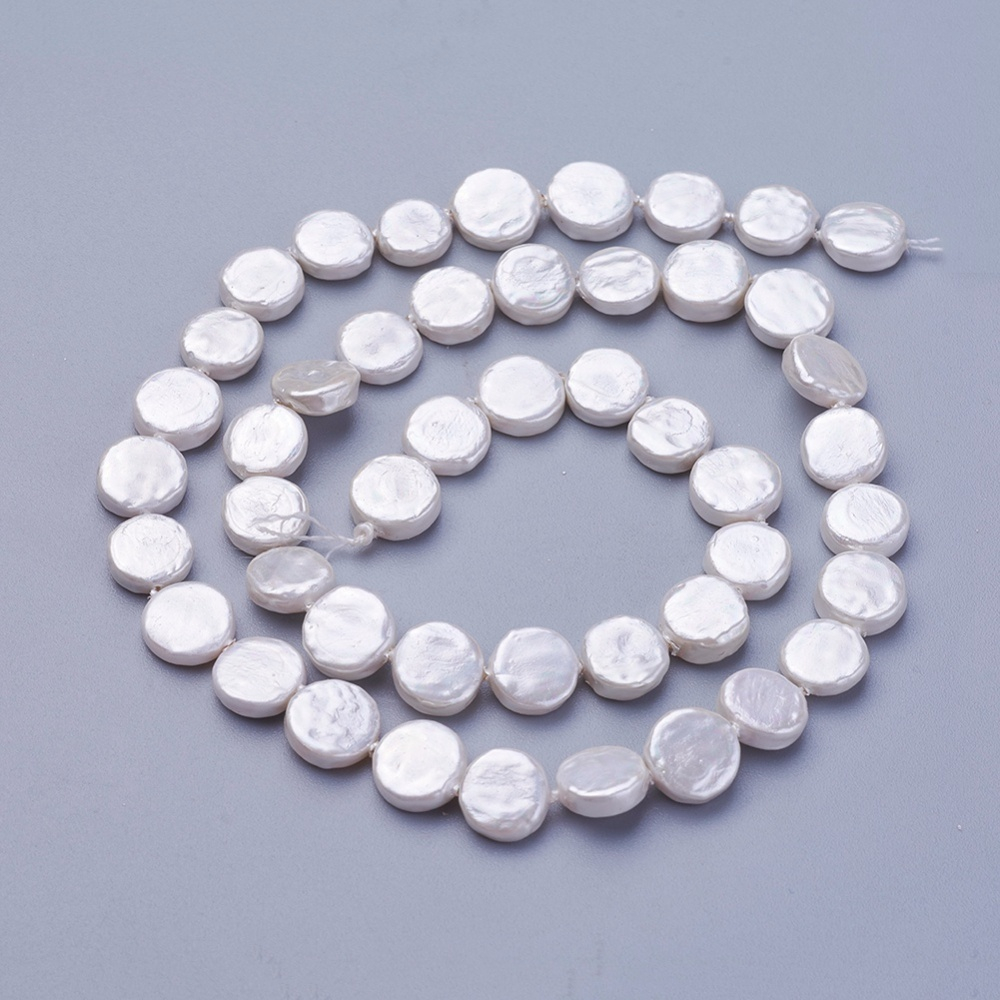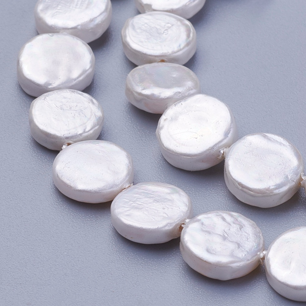 Margele rotund plan din sidef natural alb 8 mm, moneda, 1 bucata