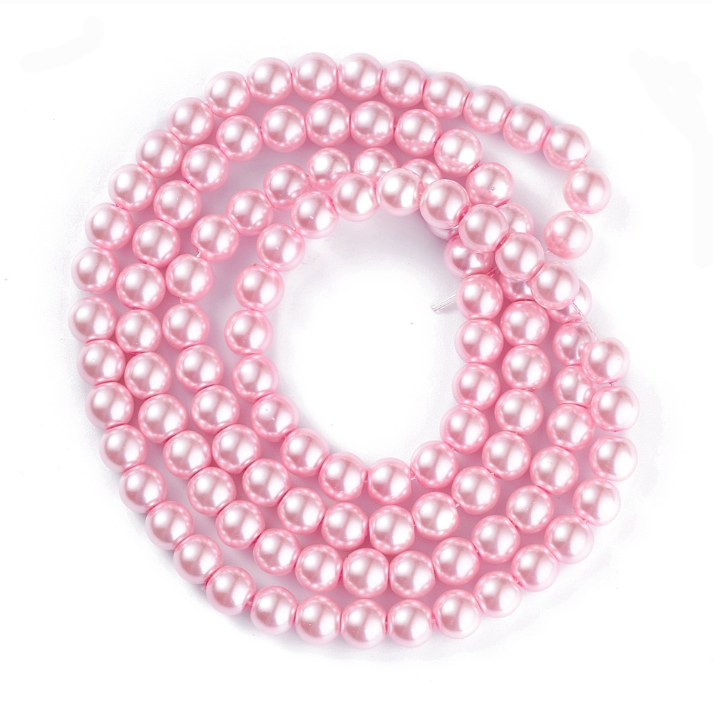 Perle de sticla roz, rotunde 8 mm, 1 bucata