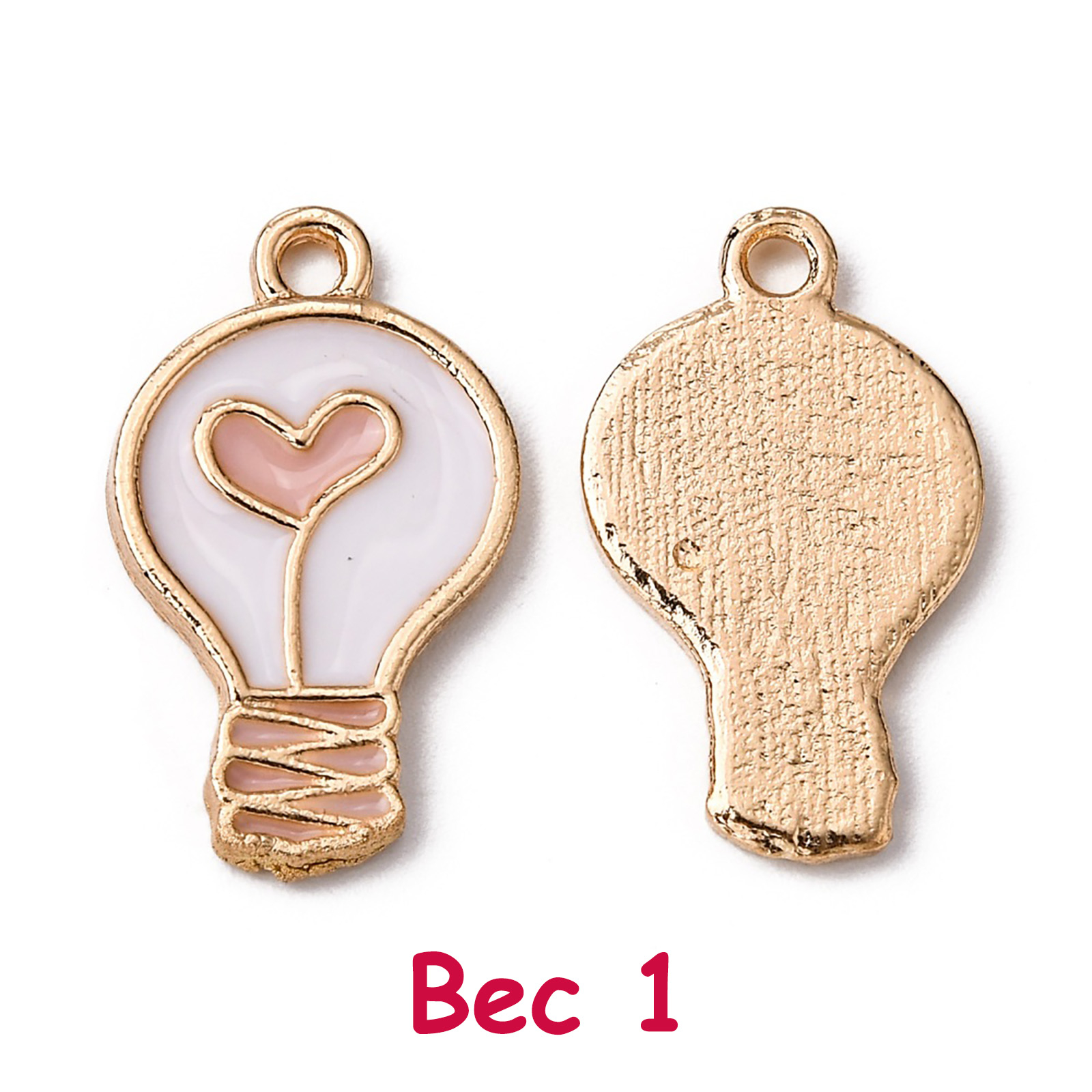 Charm emailat bec alb cu interior roz pal, metal auriu,